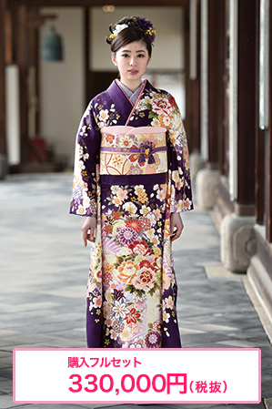 - 振袖・袋帯・長襦袢・帯締め・帯揚げ・重ね衿・草履・バッグ・和装小物・裏仕立てなど、充実の30点フルセットとなっております。
